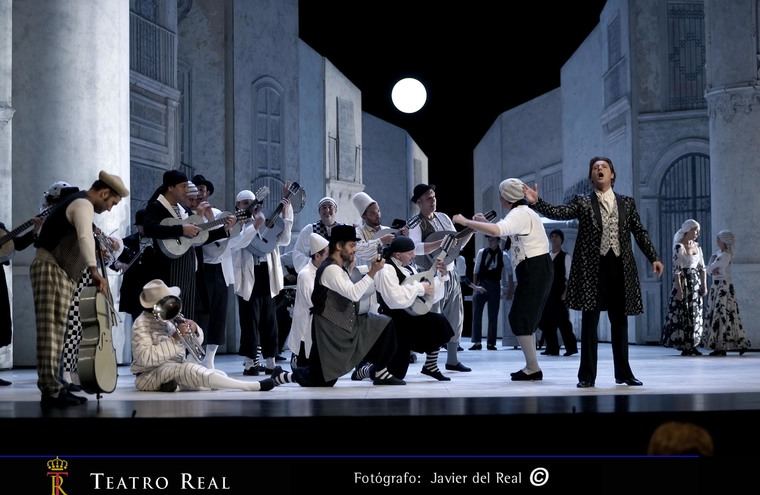 El Teatro Real ha inaugurado su 17 Temporada con Il barbiere di Siviglia, de Gioachino Rossini. Por fin el gran programador se ha dignado incluir un título del repertorio excelso del género junto a sus caprichos y favoritismos. Lástima que sea en ltima instancia, ya cesado y gravemente enfermo. El Real hace frente a una grave crisis, sin director artístico a tiempo completo, con un patronato gravemente afectado por todo lo ocurrido, y con una producción de 2005 rescatada in extremis. Pero el célebre barbero puede con todo y las diez funciones programadas, entre los días 14 y 26 se septiembre, están registrando llenos absolutos. El pblico abonado al que el teatro debe su existencia, parece encantado y dispuesto a mirar hacia adelante. Escena y msica congeniaron como hacía tiempo que se echaba en falta. Sin ser un reparto excepcional, cumplió su cometido. Han pasado casi 198 años de su estreno, y esta pieza de Rossini se mantiene como una de las grandes obras del repertorio operístico de todos los tiempos.