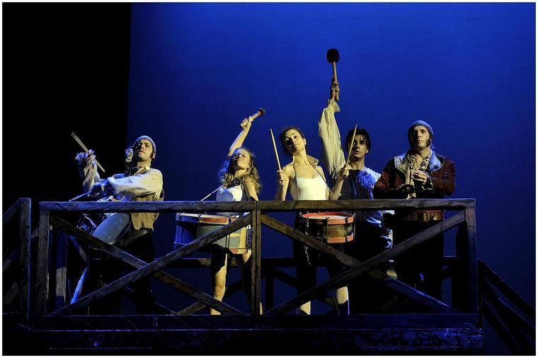La msica, las marionetas pequeñas y grandes, -el padre de la chica es un gran acierto-, los continuos entremeses musicales, las divertidas batallas, las escenas simultáneas, todo ello colabora a la fluidez del montaje. También hay cosas menos inspiradas, como la enrevesada lectura de periódicos con que se inicia la obra para para situarnos en contexto. O cosas francamente sobrantes como las alusiones al presente, aunque hay que reconocer que recibieron aplausos espontáneos los ataques a los políticos, y sobre todo las invectivas contra los curas.