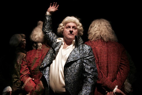 Todas las monedas tienen dos caras, y todas las situaciones individuales y colectivas, dos aspectos. Tras la cruz de la Polonia eterna, espiritual y trascendente de Anheli, llega de la misma Polonia la cara de la moda global, postpop, hipertrivial, que eleva a canon la papilla relativista que los medios de comunicación han convertido en cultura de masas. Esta versión desinhibida de la muy seria obra Sprawa Dantona (El caso Danton) escrita hace casi un siglo por una joven morfinómana obsesionada por la Revolución Francesa que murió tuberculosa a los 33 años, es un paradigma del ocaso del posmodernismo, de lo antiguo que es lo moderno de ayer mismo. El delirio egocéntrico de Jan Klata, -que va a cumplir 40 tacos pero an no madura-, tiene méritos de partida, pero se despeña a lo largo de casi tres horas circenses, histriónicas, ridículas y bastante tediosas. Con la mitad de duración, la eliminación de innumerables gracietas, folleteos y descubrimientos de la rueda, la propuesta podría haber cuajado en la excelencia del reparto y la universalidad del dilema moral, filosófico, político y vital que se presenta, la piedra fundacional de nuestra época, el pecado original de nuestra democracia. Pero entonces hubiera sido otra obra: las propuestas serias son aburridas, tienen caspa y no divierten a los descerebrados entretenedores que nos venden como sesudos intelectuales del nuevo siglo.