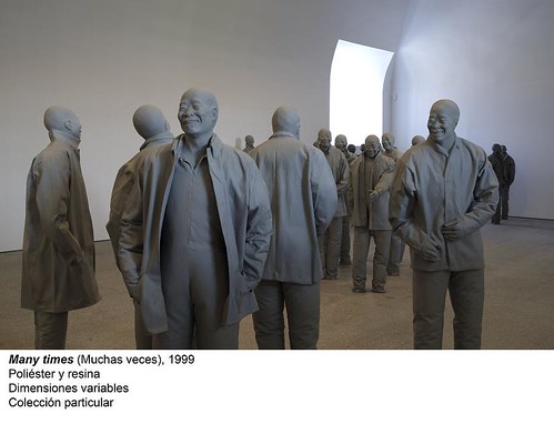 Difícil destacar obras concretas de este conjunto coherente, lleno de sorpresas ldicas, de guiños humorísticos, de inocencia. Se quiere dar trascendencia a su obra atribuyéndole reflexiones filosófico-políticas sobre la globalidad contemporánea. Pero de mayor trascendencia y orginalidad nos parece su sentido del humor sobre la condición humana, fantasías de figuras de pie o sentadas, ante el espejo o frente al foco, solitarias, en pareja, en grupo y en multitud, como sus cien personajes agobiantes, -el mismo repetido y todos diversos- de ese many times interrogante. Vean los trece seres misteriosos del hermoso jardín del museo; vean la momia sentada que masculla y mueve la mandíbula; sorpréndase con el pequeño solitario de Wasteland, la pareja diminuta de Stuttering Piece, con George, con Sara y otros enanos, con esos personajes que examinan tambores sentados en sofás, y aquellos otros que conversan, y el coche poblado de escaleras, y el más extraño descarrilamiento de todos los tiempos. Este escultor es el exponente más claro que conozco de la evolución de la Escultura hacia la Instalación. Sus esculturas necesitan, invaden y rellenan el espacio circundante en proporciones precisas y en absoluto caprichosas. Sus esculturas necesitan de observadores que las contemplen desde las perspectivas imaginadas por su autor y desde muchas otras que ni siquiera intuyó. Sus esculturas son sobre todo seres que gozan de la ubicuidad de ser nicos y de ser clones, de ser humanos y ser muñecos, de estar vivos y tener los ojos cruelmente tachados, una tensión muy de nuestros días.
