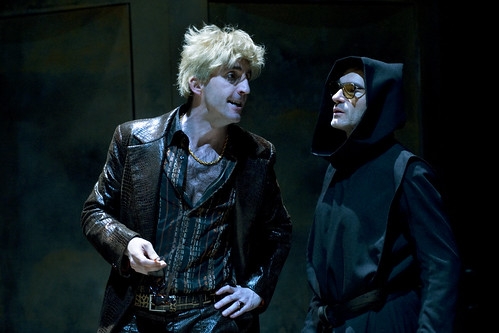 Digamos que no es lo mejor de La Abadía en esta temporada. Digamos que es una pena ver que la producción y la dirección de este montaje fracasan en acercarnos este shakespeare espeso; por confusión de conceptos, extremada pobreza de medios, falta de imaginación y recursos para desbrozar el laberinto, y un resultado final que debemos incluir en la nefasta línea cutre que sigue dominando nuestros escenarios. Esa confusión entre minimalismo y racanería, atemporalidad y chaquetones de cuero negro, versatilidad y barullo, desprecia las inmensas posibilidades de un lugar mágico como esta hermosa abadía, desperdicia un competente reparto, y supedita su aportación a prosaicas morcillas textuales de trillada corrupción política junto a cansina imaginería sacrílega a la moda anticlerical (el cinturón-cilicio, mamma mia!), haciendo una lamentable contribución a esa galopante dictadura laicista, feísta, cutrista, acultural y antiestética, vulgar y chabacana, que constriñe la cultura subvencionada de las pobrecitas españas.